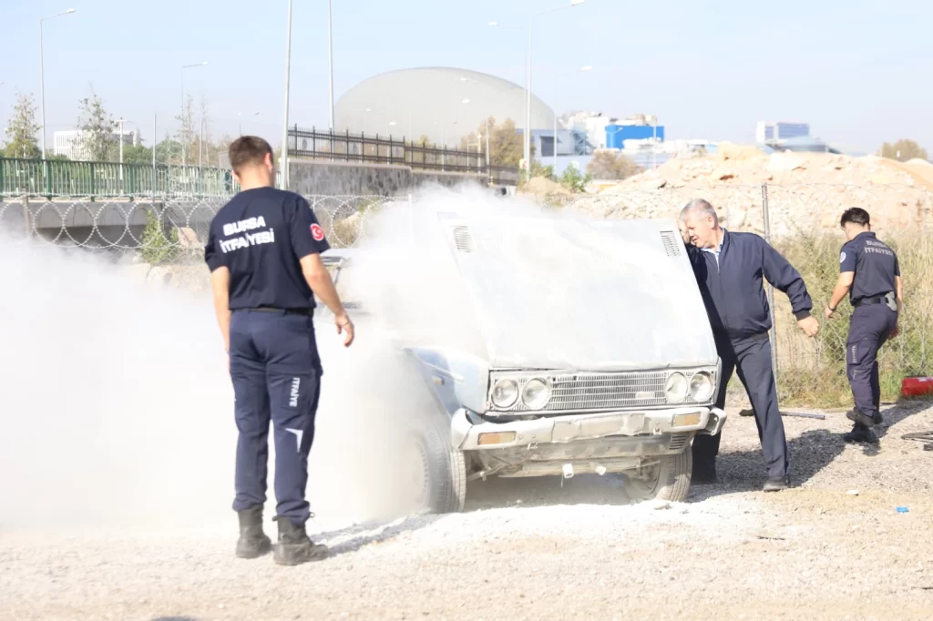 Bursa Büyükşehir Belediyesi iştiraki BURULAŞ ve İtfaiye Daire Başkanlığı iş birliğiyle düzenlenen eğitimlerde, toplam 964 şoföre olası araç yangınlarına doğru ve etkin müdahale yöntemleri hem teorik hem de uygulamalı olarak gösteriliyor.