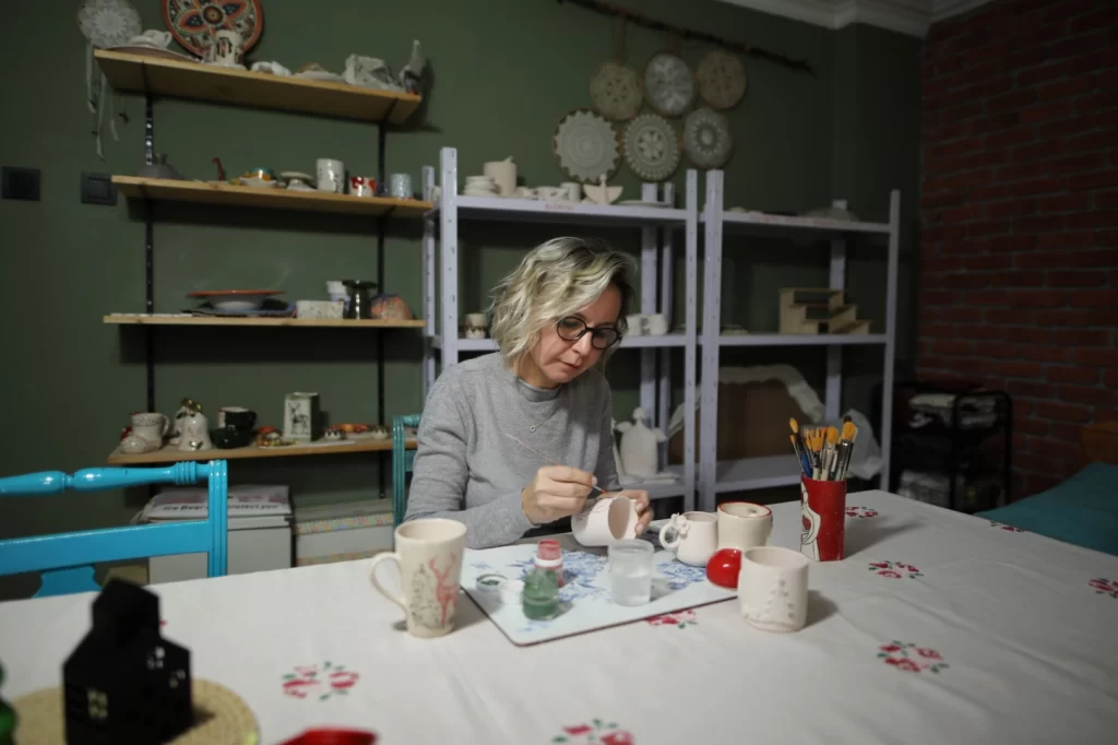 İş yeri açma hayaliyle Kent Akademisi’ndeki eğitimlere katıldığını söyleyen Özden Çobanoğlu, “Eğitimlerin sonunda artık bir seramik atölyem var. Hobimi bir meslek haline getirmiş oldum. Workshoplar yapıyorum, satış yapıyorum, çeşitli mecralarda atölyeler düzenliyorum. Artık hayalini kurduğum bir mesleğim ve iş yerim var. Ev hanımları da Bursa Büyükşehir Belediyesi sayesinde her alanda eğitim alabilir ve sonrasında bunu hayata geçirebilir. Desteklerinden dolayı Başkan Mustafa Bozbey’e teşekkür ediyorum” dedi.