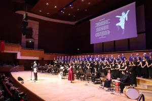 Türk Halk Müziği’nin efsane ismi 84 yaşındaki Bedia Akartürk, İzmir Büyükşehir Belediyesi Türk Halk Müziği Korosu’nun Ahmed Adnan Saygun Sanat...