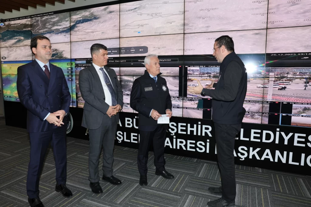 Bursa Büyükşehir Belediye Başkanı Mustafa Bozbey, Afet Koordinasyon Merkezi’ni (AKOM) ziyaret ederek yağış beklentisi ve yapılan hazırlık çalışmaları hakkında bilgi aldı. Büyükşehir ekiplerinin yoğun kar yağışı dahil olmak üzere en nitelikli hizmeti verecek şekilde hazır bulunduğunu belirten Başkan Bozbey, “Ekiplerimiz ve ilçe belediyelerin ekipleri uyum içinde çalışarak çıkabilecek olumsuzlukları en aza indirmek amacıyla sahada olacak. Ayrıca yolda kalan vatandaşlarımız bir telefon aracılığıyla bize ulaşabilir. Onlara hem sıcak yemek desteği, hem de yolda kalma ve benzeri durumlarda teknik müdahale desteği vereceğiz. Arkadaşlarımız her türlü hazırlığı yapmış durumda. Bursalılar hiç endişe etmesin” diye konuştu.