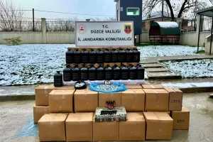Düzce İl Jandarma Komutanlığı ekipleri, Merkez ilçede düzenlenen operasyonda 900 litre etil alkol ve bin 130 adet alkol üretim kiti...