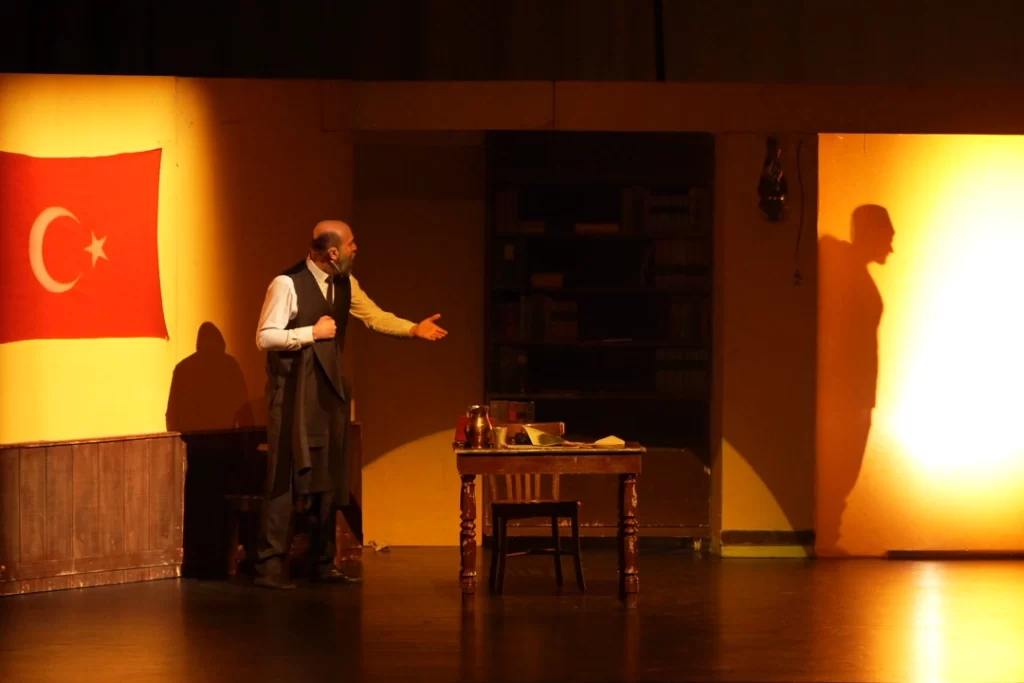 Oyunda, Milli Mücadele’nin en çetin günlerinde kaleme aldığı İstiklal Marşı ile milletin bağımsızlık ruhunu ateşleyen Mehmet Akif Ersoy’un hayatından kesitler sahneye taşındı. Akif’in düşünce dünyası ve eserleri gençlerle buluşturulurken, İstiklal Marşı’nı yazarken yaşadığı zorluklar da etkileyici bir anlatımla aktarıldı. Şairin, “Allah bir daha bu vatana İstiklal Marşı yazdırmasın” duasının anlamı bir kez daha derinden hissedildi.
