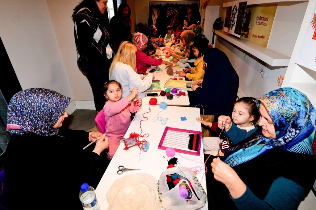 İzmir’de Bornova Belediyesi Çocuk Oyun ve Aktivite Merkezlerinde düzenlenen ebeveyn atölyeleri kapsamında, çocuklara yönelik dokuma atölyesi gerçekleştirildi. Minikler, ebeveynleriyle birlikte kilim dokuma çalışmaları yaparak hem el becerilerini geliştirdi hem de geleneksel dokuma sanatıyla tanıştı.