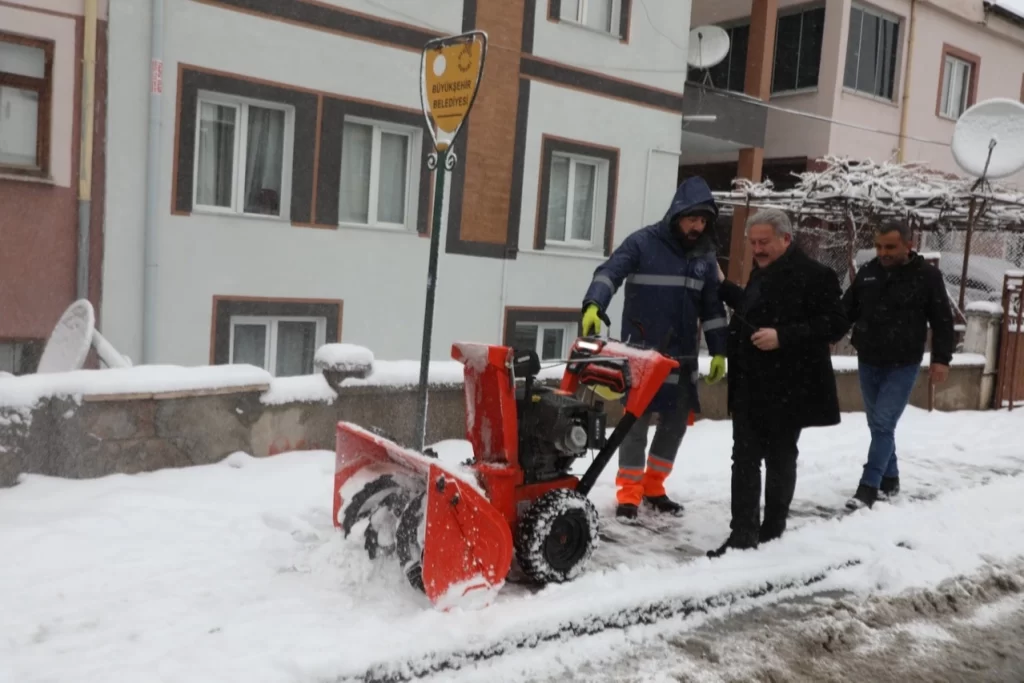 KAYSERİ (İGFA) – Eskişehir Bağları Osmanlı, Danişmentgazi, Selçuklu Mahallelerinde gerçekleştirilen karla mücadele çalışmalarına katılan Kayseri Melikgazi Belediye Başkanı Doç. Dr. Mustafa Palancıoğlu, vatandaşlara dikkatli olunması gerektiği konusunda uyarıda bulunurken, Melikgazi Belediyesi ekiplerinin 7/24 çalışmalarına devam ettiğini belirtti.