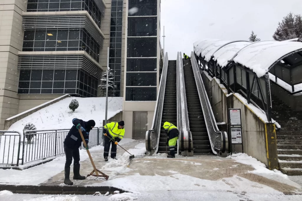Kocaeli Büyükşehir Belediyesinin sorumluluk alanındaki ana arter, cadde ve bulvarların ulaşıma elverişli olması için kar küreme ve tuzlama çalışması yapan ekiplerin yanı sıra kent merkezindeki kaldırımlarda da kar küreme ve temizlik çalışması gerçekleştiriliyor. Bu kapsamda Umuttepe Kocaeli Üniversitesi Hastanesi’ndeki yol ve kaldırımlar ile poliklinik ve acil servis girişlerinde kar küreme çalışmaları sürüyor. Ekipler; poliklinik, acil servis ve hastane ana girişleri, durak çevreleri ve vatandaşların yoğun olarak kullandığı yaya geçiş güzergâhlarında kar temizliği ve tuzlama çalışmalarını yerine getiriyor. Soğuk havaya bağlı oluşabilecek buzlanmaya karşı önlemler artırılırken, hastane bölgesinde yaya ve araç trafiğinin kesintisiz devam etmesi sağlanıyor.
