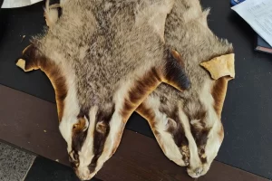Kilis Öncüpınar Sınır Kapısı’nda Suriye’den Türkiye’ye giriş yapan bir yolcunun valizinde yapılan kontrollerde kanguru, porsuk ve yaban tavşanına ait 5...