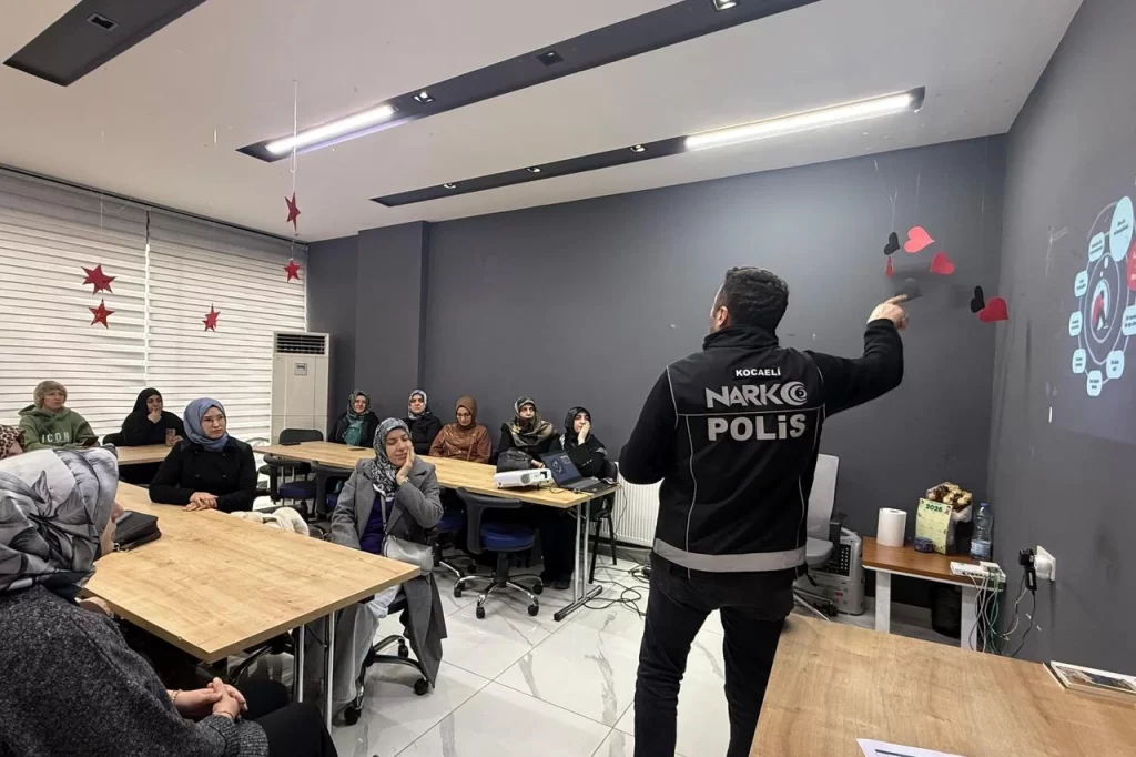 Narkotik Suçlarla Mücadele Şube Müdürlüğü ekipleri tarafından verilen eğitimde, annelerin uyuşturucuyla mücadeledeki rolüne dikkat çekildi. Kocaeli Anne Şehir Merkezleri üyeleri, narkotik polislerinin aktardığı bilgileri ilgiyle dinledi.