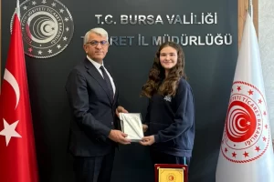Ticaret Bakanlığı tarafından düzenlenen “Bilinçli Tüketici Olmak” resim yarışmasında Bursa birincisi seçilen Selçuk Hatun Ortaokulu öğrencisi Esma Gül’e ödülleri takdim...