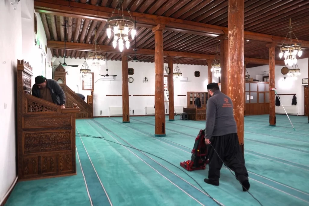 Kayseri Melikgazi Belediyesi, vatandaşların ramazan ayında daha temiz ve huzurlu bir ortamda ibadetlerini gerçekleştirebilmeleri amacıyla ilçedeki tüm camilerde kapsamlı temizlik çalışması yapıyor.