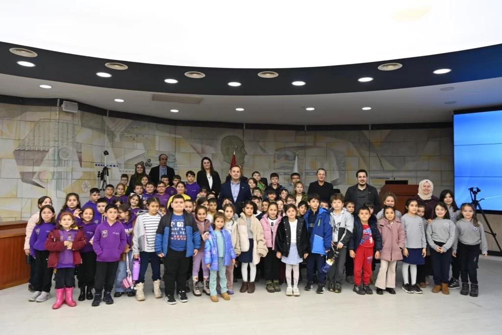BALIKESİR (İGFA) – Balıkesir Büyükşehir Belediye Başkanı Ahmet Akın, Albay Tayyar Nuran Oğuz İlkokulu, Fevzi Çakmak İlkokulu ve Kadriye Kemal Gürel İlkokulu’nun 2. sınıf öğrencilerini Belediye Meclis Salonu’nda ağırladı. Akın, kendisini ziyaret eden öğrencilerle Meclis Salonu’nda bir araya gelerek onlarla sohbet etti. Çocuklarla keyifli bir sohbet gerçekleştiren Akın, çocuklara Balıkesir’in ve ülkenin geleceğini onların şekillendireceğini söyledi. Öğrencilerle tek tek ilgilenen Akın, Ulu Önder Gazi Mustafa Kemal Atatürk’ün çocuklara verdiği değere vurgu yaparak şu ifadeleri kullandı; “Ulu Önderimiz Gazi Mustafa Kemal Atatürk dünyada çocuklara bayram armağan eden tek liderdir. Atatürk TBMM’nin kurulduğu gün olan 23 Nisan’ı sizlere armağan etti, çünkü Cumhuriyetimizi, ülkemizi ve bugün misafir olduğunuz gibi meclislerimizi sizlere emanet etmek istedi. Onun bizlere emanet ettiği Cumhuriyetimize sahip çıkıyoruz. Sizler bugün okul sıralarında oturuyorsunuz, yarın Balıkesir Büyükşehir Belediyemizin Meclisi gibi yerlerde oturarak ülkemizi yönetecek ve temsil edeceksiniz.” dedi.
