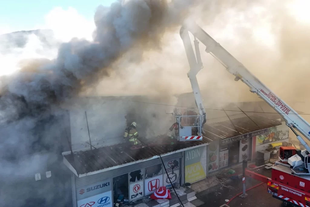 İzmir’in Buca ilçesindeki 6. Sanayi Sitesi’nde bir otomobil yedek parça dükkânında yangın çıktı. Kısa sürede büyüyen alevler, bitişikte bulunan iki iş yerine daha sıçradı. Olay yerine sevk edilen İzmir Büyükşehir Belediyesi İtfaiye Dairesi Başkanlığı ekipleri, 14 araç ve 70 personelle müdahale etti. Yangın, yaklaşık iki saat süren çalışmaların ardından kontrol altına alındı.