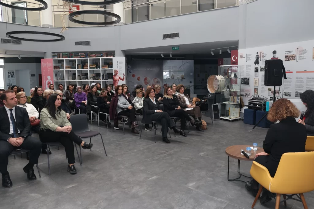 Nilüfer Belediyesi Dr. Ceyhun İrgil Sağlık Müzesi’nde gerçekleştirilen söyleşiye; Nilüfer Belediye Başkanı Şadi Özdemir’in eşi Nuray Özdemir, Nilüfer Kent Konseyi Genel Sekreteri Elifhan Köse Çal ve çok sayıda kadın katıldı.