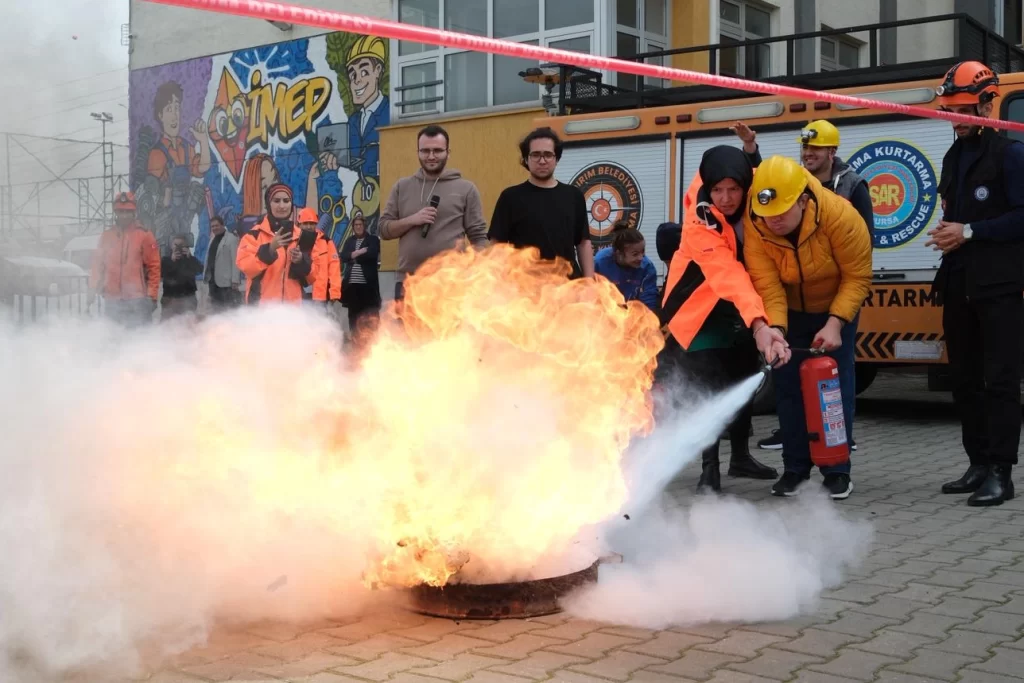 Eğitimin ardından ise öğrenilen bilgilerin uygulamalı olarak gösterilmesi ve pekiştirilmesi için düzenlenen acil tahliye ve yangın söndürme tatbikatları ise adeta gerçeğini aratmadı.