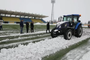 Ağrı Gençlik ve Spor İl Müdürlüğü Spor Hizmetleri Müdürü Cemil Budak, karla kaplı spor sahasını temizlemek için traktörle sahaya indi.AĞRI (İGFA)...
