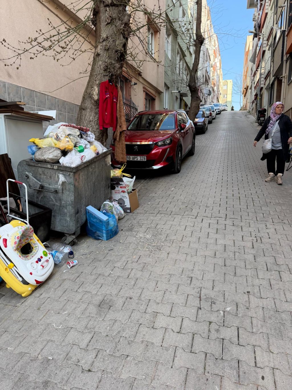 Sokakta park halinde bulunan araçların hemen yanında oluşan bu görüntü vatandaşların tepkisini artırdı. Özellikle çocuk oyuncaklarının ve ev eşyalarının da çöplerin yanına bırakılması sokakta düzensiz ve sağlıksız bir ortam oluşturdu.