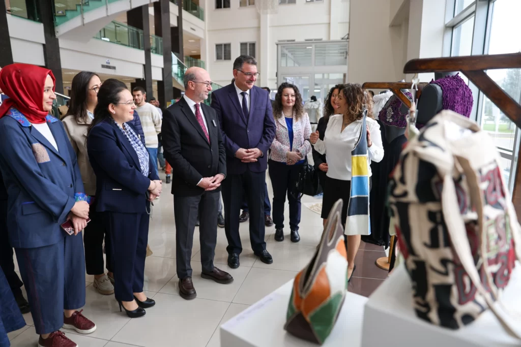 Ayakkabı Tasarımı ve Üretimi, El Sanatları, İç Mimarlık ve Moda Tasarımı bölümlerinden öğrenci ve akademisyenlerin eserlerinin yer aldığı sergide; kullanım ömrünü tamamlamış kilimler, kot kumaşlar ve eski aksesuarlar yeniden tasarlanarak çantalara dönüştürülürken, atık derilerden üretilen yelek ve giysiler dikkat çekiyor. Bunun yanı sıra, çeşitli atık malzemelerin yeniden yorumlanmasıyla oluşturulan vazolar, sandalyeler, banklar ve dekoratif objeler de yer alıyor.