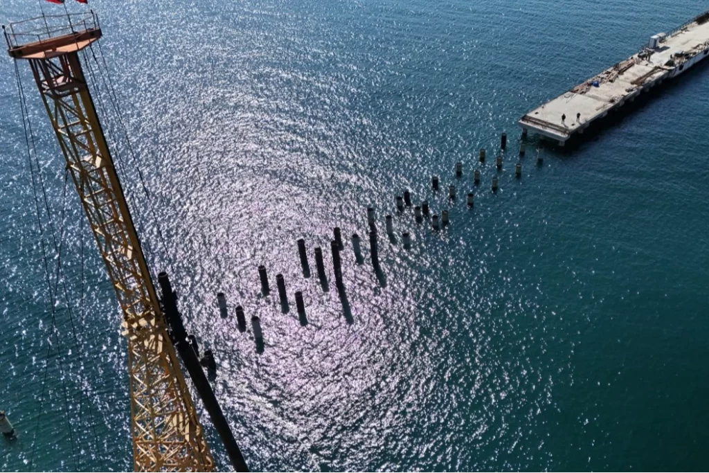 24 tane başlık kirişinin 7 tanesi tamamlanırken iskelenin 30 metrelik kısmında beton dökümü yapıldı.