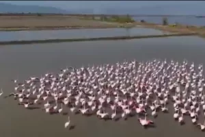 Aydın’ın Söke ilçesinde sağanak yağışların ardından Büyük Menderes’in taşmasıyla oluşan sulak alanlarda, flamingolar ve diğer yabani kuş türleri için doğaya...