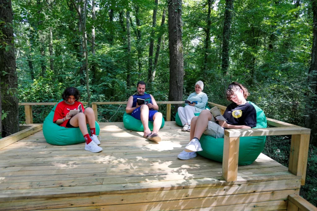 Kütüphane, 7’den 70’e tüm ziyaretçilere hitap eden farklı okuma alanlarıyla dikkat çekiyor. 1 ana meydan ve 3 ayrı okuma salonundan oluşan Orman Kütüphanesi’nde; hamaklar, armut oturma grupları, amfi alanı, banklar, salıncaklar, sallanan sandalyeler ve yüksek file alanı gibi çeşitli seçenekler yer alıyor. Bu zengin çeşitlilik, her yaştan ziyaretçinin kendine en uygun okuma köşesini kolaylıkla bulmasına imkân tanıyor.