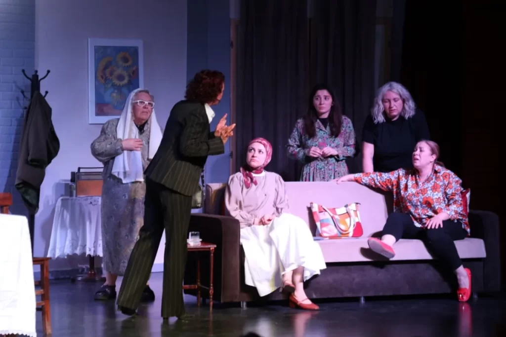 BURSA (İGFA) – İnegöl Belediyesi bünyesinde 2011 yılında kurulan ve geride kalan sürede 22 farklı oyunla izleyici karşısına çıkan İnegöl Belediyesi Şehir Tiyatrosunun 2025 yılı Aralık ayında gala gösterimini yaparak repertuarına dahil ettiği oyunu Kadın Sığınağı, Cuma akşamı yeniden sanatseverlerle buluştu. Tuncer Cücenoğlu’nun yazıp Volkan Derman’ın yönettiği ve 11 kişilik güçlü bir kadroyla sahneye taşınan 2 perdelik dram türündeki oyun, bu yıl pek çok kez Beşinci Mevsim Kültür Sanat Merkezi sahnesinde hayat buldu. “Kadın Sığınağı” tiyatro oyunu, bu sezonun son gösterimi için sahnelendi.