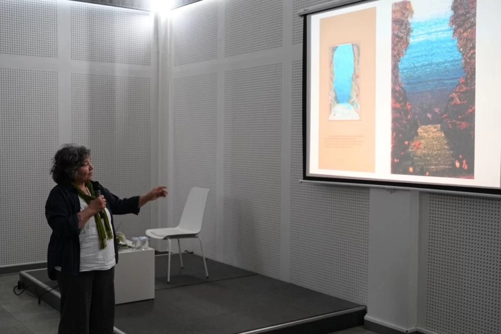 Öte yandan söyleşide sanatçının çalışmalarını devam ettirdiği “Dokuma Grubu” gündeme geldi. Gül Bolulu, bu grup içindeki bir çalışmasında kenevir ve keten malzemesini kullanarak Sümer Mitolojisi’nde yer alan Humbaba karakterini dokuduğunu söyledi.