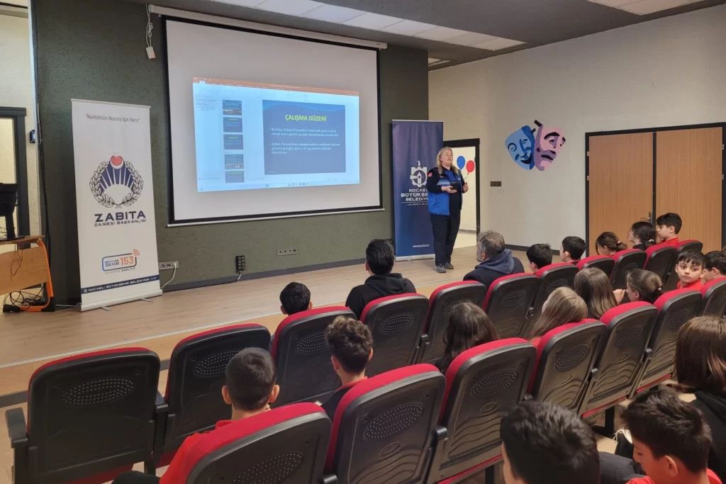 Bu kapsamda Kocaeli Büyükşehir Belediyesi Zabıta Dairesi Başkanlığı ekipleri, toplumda farkındalık oluşturmak amacıyla yürüttüğü eğitim çalışmalarını bu kez Gebze Aziz Sancar Ortaokulu’nda gerçekleştirdi.